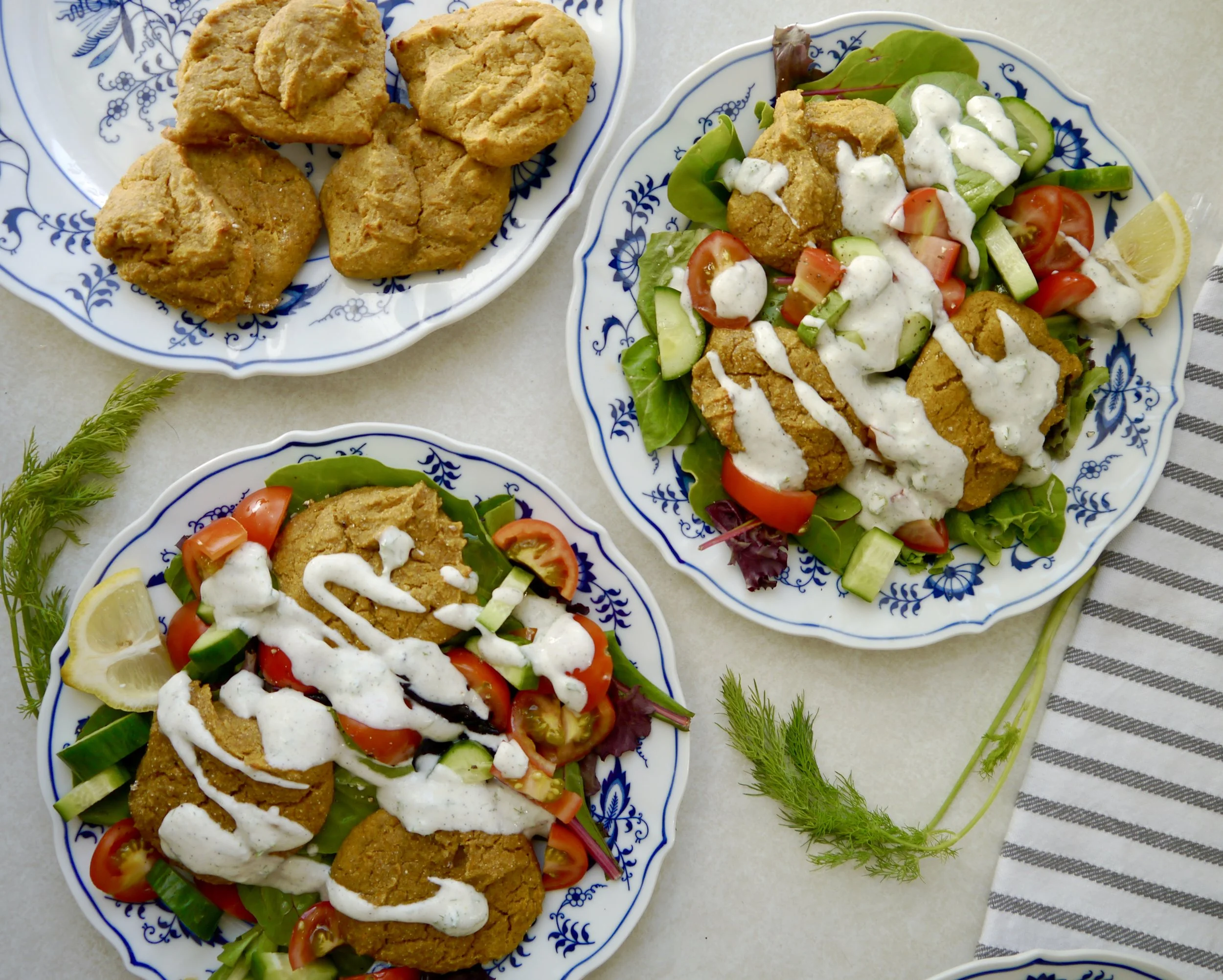 Stir all ingredients together in bowl. Use as dipping sauce or drizzle over lentil cakes. If you want to make the salad above, I used mixed greens, cherry tomatoes, and cucumbers and drizzled them with a little olive oil. I then added the lentil cakes and did a generous drizzle of the Cucumber Dill Sauce.